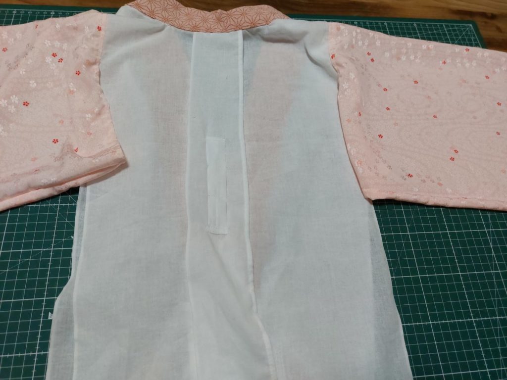 あとは身ごろと衿を合体させれば完成です。身頃と衿を1cmくらい重ねて衿で身ごろを挟みます。