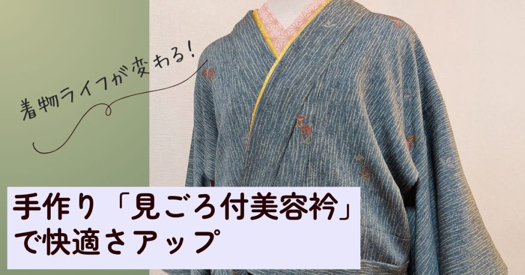 で、もう、これは作るしかない!と思って、裄短めの身ごろと袖をつけた美容衿を作りました。簡単に作れるのでおすすめです。