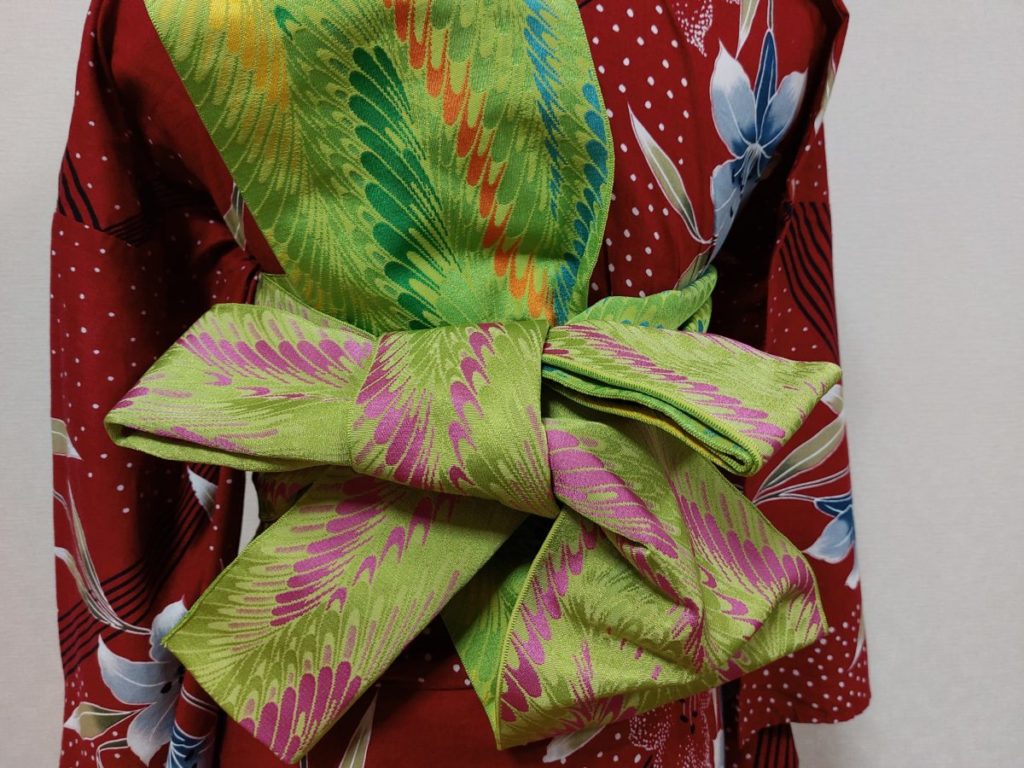 半幅帯は袋帯よりずっと手軽感があります。それにいろんな種類があって楽しいですよね。扱いもしやすいので、結び方もいろいろ楽しめます。