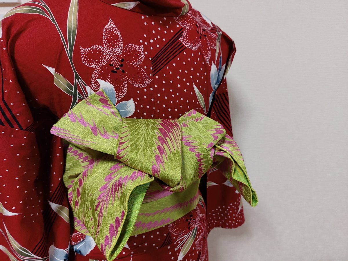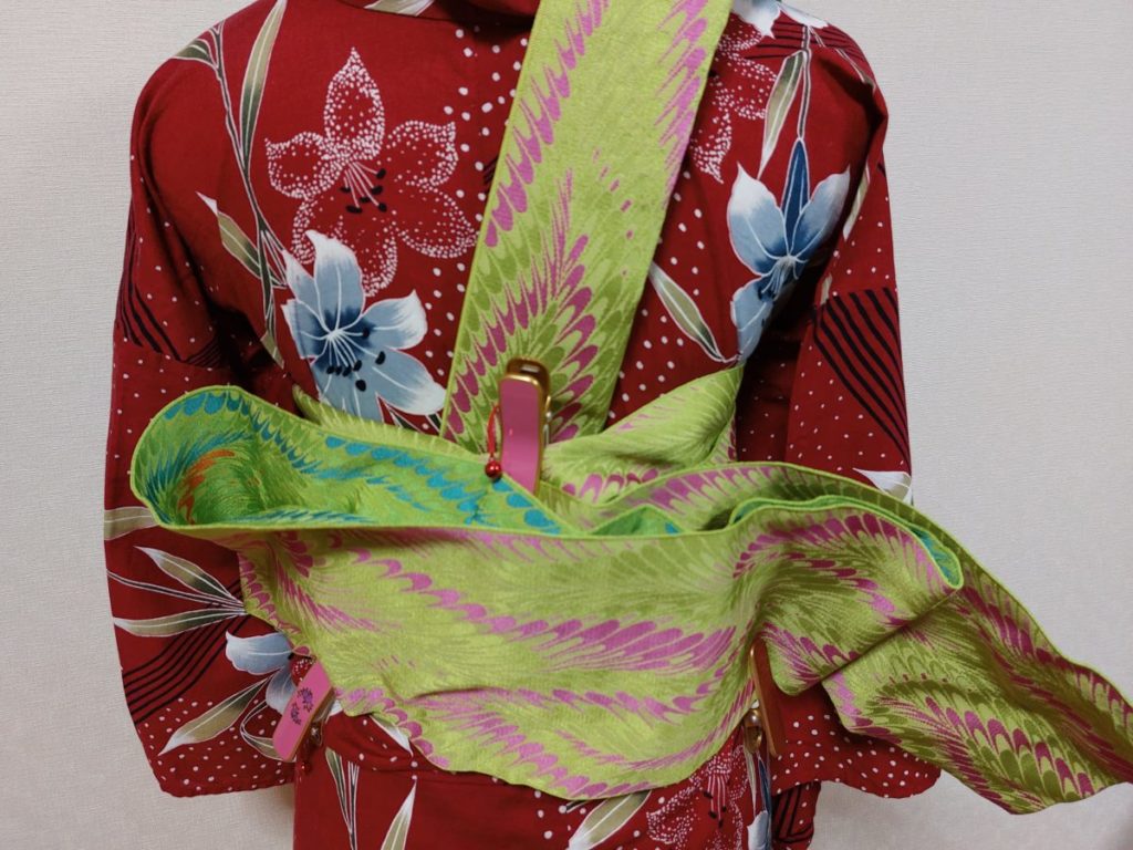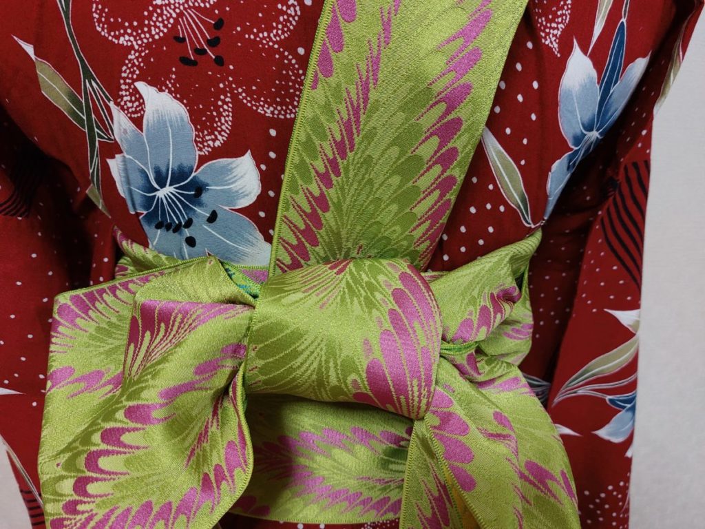 半幅帯は袋帯よりずっと手軽感があります。それにいろんな種類があって楽しいですよね。扱いもしやすいので、結び方もいろいろ楽しめます。