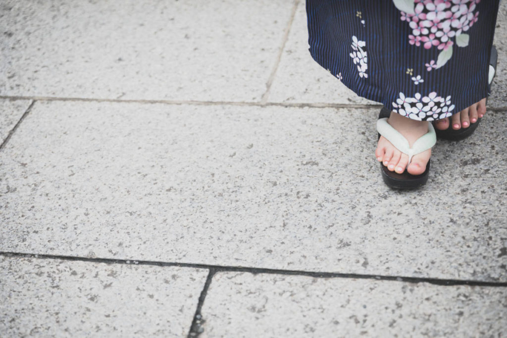 浴衣には下駄を履くのが一般的です。でも、足袋をはいて草履を履くのもよいです。また、最近はサンダルなどを合わせている方もいらっしゃいます。